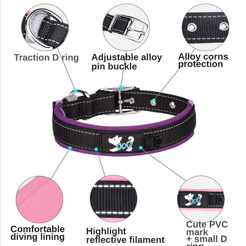 • Medium and large dog collars are made of high-quality nylon materials. The stitching is neat and soft. The lining is explosion-proof anti-friction skin hair comfortable fit neoprene lining breathable sweat absorbing not stuffy pull traction nor tight neck